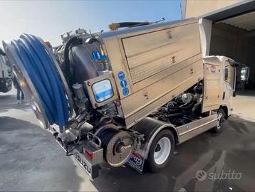 Autospurgo ISUZU mod. M27, 3,5 tonnellate 2 assi, passo R, 150 cav., Euro 6, cambio manuale, Lampeggiante posteriore, 4 strobo fronte retro a lampeggio regolabile, freno di stazionamento aggiuntivo pneumatico negativo, installato in cabina con manettino di controllo e manometro, attrezzatura CRM mod. CRM SP1, cisterna in acciaio inox AISI 316, capacità totale 2400 lt suddivise in 1360 scomparto fanghi e 1040 scomparto acqua, ribaltabile fondo fisso, bocca di lavaggio, pompa di vuoto PNR 124 JUROP 12.000 MLT/MIN, pompa alta pressione KF 32 110 LT/MIN A 210 bar, predisposizione pompa di travaso, presa di forza OMSI 450 VERTICALE, naspo posteriore idraulico con 50 mt di tubo da 50/60/80, naspo laterale idraulico con 50 mt di tubo da 1/2" e 40 da 3/8, flussaggio interno a doppio ugello, 3 spie visive come indicatore di livello, radio comando REM multifunzione, naspo laterale sx per disinfestazione con 50 mt di tubo + serbatoio prodotto, carrozzeria in inox, portatubi laterali con asole per giro tubo, cassoni porta oggetti a grande capienza con sportelli verticali, impianto aria pneumatico con compressore industriale a comando idraulico, linea vuoto inox con filtro di sicurezza e ciclone inox grande capienza con scarico, linea acqua in inox con valvole, filtro smontabile, scarico acqua. Il tutto nuovo in pronta consegna