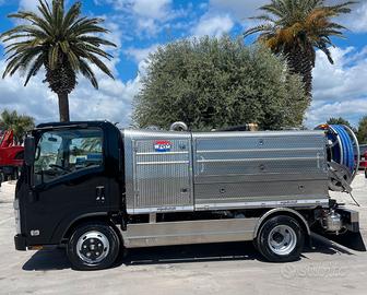 Autospurgo ISUZU mod. M27, 3,5 tonnellate 2 assi, passo R, 150 cav., Euro 6, cambio manuale, Lampeggiante posteriore, 4 strobo fronte retro a lampeggio regolabile, freno di stazionamento aggiuntivo pneumatico negativo, installato in cabina con manettino di controllo e manometro, attrezzatura CRM mod. CRM SP1, cisterna in acciaio inox AISI 316, capacità totale 2400 lt suddivise in 1360 scomparto fanghi e 1040 scomparto acqua, ribaltabile fondo fisso, bocca di lavaggio, pompa di vuoto PNR 124 JUROP 12.000 MLT/MIN, pompa alta pressione KF 32 110 LT/MIN A 210 bar, predisposizione pompa di travaso, presa di forza OMSI 450 VERTICALE, naspo posteriore idraulico con 50 mt di tubo da 50/60/80, naspo laterale idraulico con 50 mt di tubo da 1/2" e 40 da 3/8, flussaggio interno a doppio ugello, 3 spie visive come indicatore di livello, radio comando REM multifunzione, naspo laterale sx per disinfestazione con 50 mt di tubo + serbatoio prodotto, carrozzeria in inox, portatubi laterali con asole per giro tubo, cassoni porta oggetti a grande capienza con sportelli verticali, impianto aria pneumatico con compressore industriale a comando idraulico, linea vuoto inox con filtro di sicurezza e ciclone inox grande capienza con scarico, linea acqua in inox con valvole, filtro smontabile, scarico acqua. Il tutto nuovo in pronta consegna Per info chiamate o WhatsApp al numero Pa