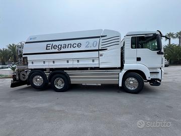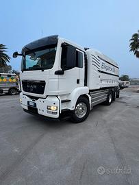 Telaio MAN TGS 26.440 del 2009 Euro 4, 6x2, cambio manuale, km 273000 circa, interni in pelle, attrezzatura spurgo pozzi neri, cisterna nuova in acciaio inox, capacità 11350 lt di liquami, 3800 lt di acqua contenuta nella sacche laterali, pompa di vuoto Robuschi RB dv 85 26000 lt/min, pompa dell'acqua Hpp slr 212 lt/min a 200 bar, avvolgitubo posteriore abbattibile, naspo laterale dx da 1/2" idraulico, naspo laterale sx da 1/2", cassette laterali porta tubi, ribaltabile, portellone, radiocomando, veicolo in perfette condizioni d'uso