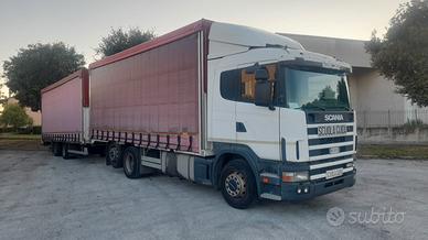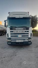 Motrice marca Scania CV R124 ,cambio manuale, 3 assi , anno prima immatricolazione 09/03/2000 normativa antinquinamento euro 2. Lunghezza 9,795 mt. Allestito uso scuolaguida;