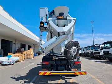 NUOVO DI FABBRICA, IN PRONTA CONSEGNA assi 8x4; cv 510; euro 6 step E; Cambio manuale 16 m; Clima, specchi elettrici, autoradio dab; Aletta parasole, avvisatore acustico retromarcia; Lampeggianti a led; Balestre posteriori extrarinforzate 10 F; Serbatoio urea riscaldato; Sistema di sicurezza, retrocamera, angolo cieco, radar; Pneumatici 13 R 22.5; Allestimento betoniera Cifa RY 1300 12 m/3; Azionata da PTO al volano multipower; Predisposizione tappo ekos; Canale std + canale aggiuntive; Faro post. a led; Cassetta porta oggetti; Monocolore bianca;