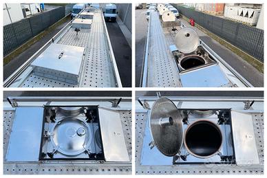 CISTERNA ALIMENTARE SANTI/MENCI ANNO 2018/2010 CISTERNA SANTI DEL 2018 CILINDRO IN ACCIAIO INOX 304 RIVESTIMENTO IN VETRORESINA BIANCA CAPACITÀ 35.500 LT. 4 SCOMPARTI 12.000-4.500-7.000-12.000LT ISOLAMENTO DI 90°C IMPIANTO DI LAVAGGIO CON 6 VALVOLE E 6 SFERE DI LAVAGGIO 1 TUBO DI SCARICO DA 100MM CON 3 USCITE 4 VALVOLE DI FONDO DA 100MM 4 BOCCAPORTI IN 4 CASSETTE INOX 1 VALVOLA DI SFIATO PER BOCCAPORTO 1 CASSETTA PORTA ATTREZZI IN ACCIAIO INOX PASSERELLA ANTISCIVOLO IN ALLUMINIO RINGHIERA ABBATTIBILE IN ACCIAIO ATP 07/2027 TELAIO MENCI IN ALLUMINIO DEL 2010 SOSPENSIONI PNEUMATICHE ABS ASSALI BPW ECO PLUS 1° ASSE SOLLEVABILE 3° ASSE STERZANTE 6 CERCHI IN ALLUMINIO 4 GOMME MICHELIN + 2 CONTINENTAL 385/65/22.5: 1 SX 5MM - 1 DX 5MM 2 SX 7MM - 2 DX 5MM 3 SX 6MM - 3 DX 5MM SCHEDA MECCANICA REVISIONE STRADALE 12/2026 USURA FRENI: 1 ASSE SX DISCO 60% - PASTIGLIE 60% - DISCO DX 60% - PASTIGLIE 60% 2 ASSE SX DISCO 100% - PASTIGLIE 100% - DISCO DX 100% - PASTIGLIE 100% 3 ASSE SX DISCO 60% - PASTIGLIE 60% - DISCO DX 60% - PASTIGLIE 60% SOSPENSIONI PNEUMATICHE OTTIME AMMORTIZZATORI OTTIMI STRUTTURA DEL SEMIRIMORCHIO SANA TARA 6.400 KG OTTIMO STATO!!! __________________________________________ BATA CISTERNE S.R.L. CENTRO DELLE CISTERNE IN ITALIA NOLEGGIO, ACQUISTO E VENDITA DI CISTERNE ALIMENTARI NUOVE ED USATE, CISTERNE NON ALIMENTARI PER TRASPORTO DI ACQUE REFLUE, PERCOLATO, LIQUAME, CISTERNE CHIMICHE... DI VARI ANNI E CAPACITA' WE SELL FOOD, CHEMICAL, DIESEL/OIL, BITUMEN TANKS.... WITH DIFFERENT CAPACITIES AND PRODUCTION YEARS