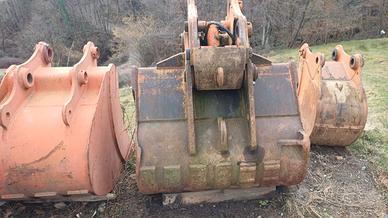 Benna roccia con sgancio rapido idraulico per escavatore 200 q montata su hitachi FH200.3 larghezza mm 1200, fori sella mm80, larghezza sella mm250 interna