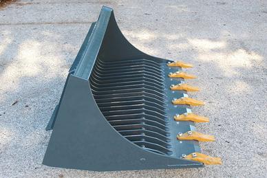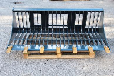 BENNA GRIGLIATA PER SKID MINIPALA BOBCAT CON LAMA E DENTI, GRIGLIA A 6 CM CIRCA, DISPONIBILE NELLE MISURE 1400mm, 1700mm, 1180mm, 2000mm.