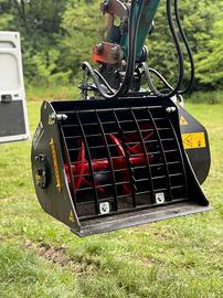 BennaMiscelatrice S8 da 80 lt. attacco per miniescvatore Macchina portante dai 16 ai 20 qli. Capacità 80 lt Misure: 850x600x650 Peso: 150 kg Eliche in Hardox spessore 10mmcertificato Perno centrale diametro 40mm coningrassatori Lama in Hardox 500 Scarico centrale con aperturaidraulica, kit elettrico, Motore idraulico Danfoss Griglia di protezione contagliasacchi Catalogo ricambi CE Spedizioni su tutto il territorioNazionale Per info o appuntamenti chiedere diStefano Seguici sui social: https://www.facebook.com/movimek.movimek https://www.instagram.com/movimek/