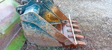 Vendo benna x escavatori da 40 /60ql larga cm70 diametro perni cm 4.5 larghezza braccio cm 16.5 la benna e' stata usata pochissimo e' praticamente nuova