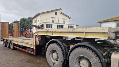 Bertoja mezzo d'opera rampe idrauliche doppie 12,75MT Semirimorchio carrellone ribassato carrello pianale pianalato con rampe Bertoja 3 assi Immatricolato 08 Maggio 1997 Agganciabile a trattore stradale 3 assi (6x4) Lunghezza totale MT 12,75 Lunghezza utile piano basso MT 8.34 interno rampe Lunghezza utile piano alto MT 3,75 Portata utile 371 q.li Sospensione meccanica (balestre paraboliche) 3 asse autosterzante Gomme tubless 245/70 R17,5 Rampe posteriore idrauliche da mt. 4,00x0,90 funzionati tramite presa di forza 3 rampette pneumatiche per salita su piano alto Spondina in ferro su piano alto 3° assale autosterzante Revisione regolare sino a Gennaio 2027 Disponibile per qualsiasi visione e prova