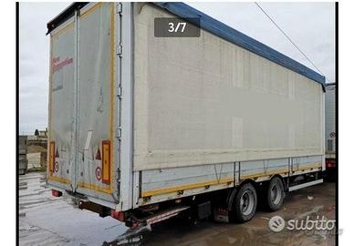 Biga Pezzaioli 2 assi centina con sponde + pedana Rimorchio carrello biga Pezzaioli BCT22F 2 assi centrali Anno 2005 Portata lorda 200 q.li Portata utile 150 q.li Tara 50 q.li Porte posteriori Timone allungabile in 3 posizioni da 8 cm cadauna Lunghezza totale MT 9,73 Lunghezza timone MT 2,00 Lunghezza pianale interno utile MT 7,75 Larghezza pianale utile MT 2,48 Sponde alluminio h= 800 Altezza interna tutto basso MT 2,99 Altezza da terra pianale di carico MT 1,00 Pedana caricatrice posteriore DHollandia portata15Q.LI 2 piedi stabilizzatori Centina alza/abbassa Copri scopri Pneumatici 265/70 R. 19.5 65% Sospensioni Pneumatiche Omologata per trasporto di cose in genere Buono stato generale Disponibile per qualsiasi visione e prova