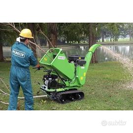 Biocippatore cingolato peruzzo tb100 - c - mot b&sIl biotrituratore/cippatore PERUZZO mod. TB 100-C è una macchina di piccole dimensioni, facilmente trasportabile, che permette di ridurre potature di grande diametro, oltre a fasci di rami o tavole di legno: il tutto ad un prezzo molto competitivo se comparato a macchine della stessa capacità di taglio. Si tratta di un macchinario realizzato con un robusto gruppo di taglio a tamburo, che permette di ridurre le ramaglie di diametro pari a 10/11 cm. Il nuovo biotrituratore/cippatore PERUZZO mod. TB100-C è poi dotato di una base motrice a cingoli. Con questo nuovo accessorio gli utenti e i contoterzisti potranno spostarsi su qualsiasi terreno, anche i più impervi e angusti come i terrazzamenti e potranno caricare e scaricare il cippatore dai propri furgoni: il tutto sempre in totale autonomia. Destinato a utenti professionali, è la macchina con la più elevata produttività della sua categoria, dotato di rotore ampio con montate due lame reversibili in acciaio di lunga durata sin dalla prima loro affilatura. Grazie al design del rotore, rami e ramoscelli vengono trascinati automaticamente all'interno della macchina, senza l'ausilio di rulli trascinatori. La forza centrifuga creata dal rotore espelle il materiale triturato fine, proiettandolo fuori dallo scarico (orientabile in altezza) e gettandolo per circa 3/5 mt (a seconda del materiale) consentendo così un facile caricamento in un contenitore o rimorchio. Il nuovo biotrituratore/cippatore TB100-C della Peruzzo, Azionato da un motore a scoppio con trasmissione a cinghie trapezoidali (che lo rende assai elastico), dispone di una tramoggia di carico inclinata, ideale per il carico di grandi volumi di ramaglia senza eccessivi tagli, risparmiando sia tempo che denaroPREZZO DI VENDITA SOLO ONLINECARATTERISTICHE TECNICHE:CV: 18 - 3,5Kw: 13 - 2,6Lame: 2Peso: 350 KgDimensioni: 216x69x171 cm