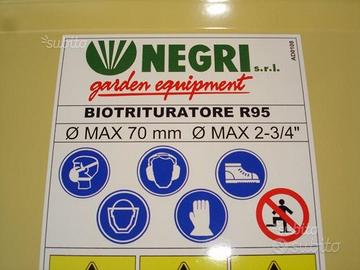 Biotrituratore Negri R95 - motore Honda benzina 6,5 Hp OHV valvole in testa - Rotore a 8 martelli - Tubo di scarico - Ruote per spostamento - Diametro max. triturabile cm 6 - Peso Kg 90 - Disponibile anche elettrico 380 Volts -- Richiedi Tranquillamente il Tuo Preventivo - Possibilità Finanziamento Intero Importo in Tutta Italia fino a 84 Mesi con Delibera in Giornata (Interamente Online) - Super Offertissima in Pronta Consegna -