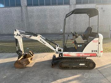 Vendesi miniescavatore marca Bobcat, modello 319, ore di lavoro 1450, cingoli in gomma, carro allargabile, sgancio rapido, 2 benne scavo e 1 benna pulizia fossi.