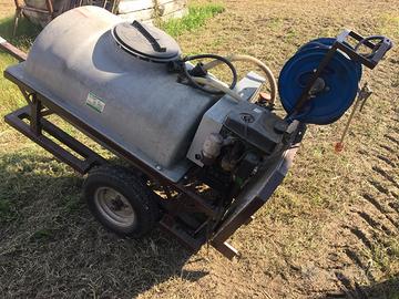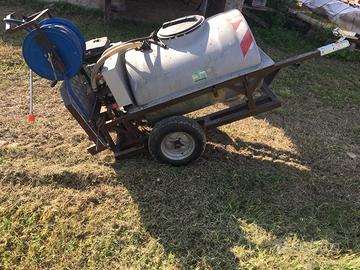 Botte irroratrice per trattamenti con ruote e munita di attacco per gancio traino. Capienza 400 litri. Avvolgitore con lancia e tubo 50 metri. Motore lombardini con avviamento a strappo. Telaio e ruote nuovi. Per info: 335 1979215