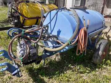 Vendo botte carrellata, capacità 8q, per trattamenti fitosanitari. Non tarata, non certificata ma funzionante. Vendo anche solo carribotte senza pompa e senza accessori per il trasporto dell'acqua.