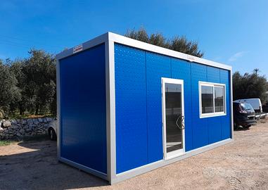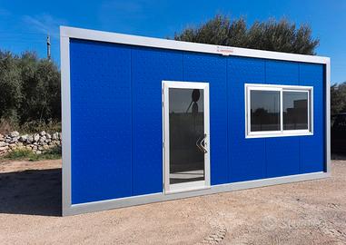 Container box prefabbricato nuovo uso ufficio personalizzato con infissi in alluminio silver e pannelli colorati. Dimensioni 6,00 x 2,40 metri.