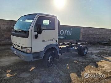 Nissan Cabstar IMPIANTO METANO - GANCIO TRAINO Autocarro furgone telaio chassis Nissan Cabstar Turbo Diesel 110 (Cilindrata motore 3.000 cc Turbo Diesel) 120 CV Cambio 5 marce + retromarcia Immatricolato 09 Luglio 2002 Km percorsi 430.000 Manutenzione ordinaria e straordinaria sempre regolarmente eseguita GANCIO DI TRAINO COLLAUDATO A LIBRETTO (TRAINO 20 Q.LI) Impianto metano (2 serbatoi montati sottotelaio) Lunghezza telaio MT 3,70 / 3,80 Passo MT 2,85 Ruote posteriori doppie Balestre e balestrini di rinforzo Revisione regolare sino a Gennaio 2023 Ottime condizioni generali Disponibile per qualsiasi visione e prova (Tipo Fiat Ducato Mercedes Iveco Daily Citroen Peugeot Opel Pick up Renault Trafic Master ideale per allestimento cassone fisso cassone ribaltabile centina frigo cassa alluminio cassa con sponda caricatrice retrattile)