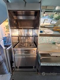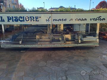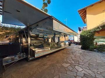 Autonegozio composto da motrice con 300mila km + negozio ambulante scarrabile dotato di cella frigorifera, banco di acciaio refrigerato, vetrina gastronomia refrigerata e vetrina gastronomia riscaldata, friggitrice con doppio cestello, piano lavoro con tagliere, lavandino con acqua calda e fredda con boiler, autonomo nell'approviggionamento di acqua perché dotato di sistema di pompa, pompa idraulica nuova per i movimenti di apertura e sollevamento del camion