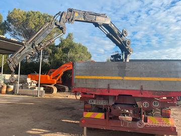 Camion è gru collaudati in buone condizioni tre assi ultimo asse pneumatico e sollevabile gru 3+2 idraulica secondo cassone con sponde in ferro disponibile prezzo non incluso