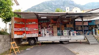 Vendo camion negozio Iveco TurboStar 79.14, allestito e funzionante, ideale per ambulanti, mercatini, fiere o attività itineranti. Cassone con apertura completa su entrambi i lati, scaffalature interne e pedana d'ingresso