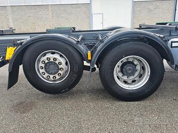 MOTRICE MERCEDES 2542 TELAIO TRASPORTO CONTAINER Motrice telaio Euro VI (Cod.BRMC1011) FINANZIAMENTI IN SEDE Anno 2014 Km. 880.000 Cambio automatico Rallentatore Retarder Motore 420 hp - Euro 6 Lunghezza utile telaio 6.70 m Passo interasse 4600 mm Altezza telaio da terra 1 m Altezza piano portacontainer 1.20 m Lunghezza totale camion 9.48 m Trasporto container 20 Piedi Sospensioni FULL ARIA Misura pneumatici 315/80 R22.5 Terzo asse libero (non intelligente) Portata utile 16300 kg Portata complessiva 26000 kg Portata rimorchiabile 44000 kg Macchina in ottime condizioni generali. CONTATTO COMMERCIALE Paolo Camacho (+39) 3-8-8-3-0-2-9-0-1-1 Acquistiamo autocarri usati, valutiamo permute con altri autocarri, macchine movimento terra ed agricole di tutte le marche. Maggiori informazioni su www.alliam.it _________________________________ parole di ricerca: motrice tre assi, 3 assi stradale, euro 6, euro vi, full pneumatica, full pneumatico, telaio da allestire, motrice centinata, motrice trasporto cereali, camion stradale, carrellone, ribaltabile, mercedes benz, Mercedes-Benz.