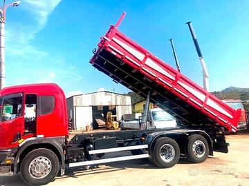 Scania p 124, 400 ribaltabile trilaterale, anno 1997 km circa 1,000,000, gommato molto bene , terzo asse intelligente e sollevabile, motore perfetto da provare e vedere, cambio manuale, ribaltabile trilaterale, apertura sponde laterale idrauliche, portata utile Q 140, piu tolleranza, veicolo come da foto completamente ricondizionato, per contatto chiamare Volpe