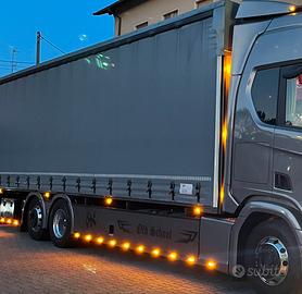 Vendesi carene laterali per Scania R new gen costruite artigianalmente in lamiera zincata. Fatte per motrice 12 metri sono adattabili anche per passi più corti. Complete di sotto carene con strisce led arancioni.