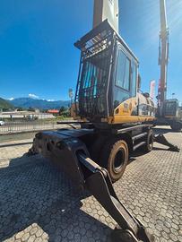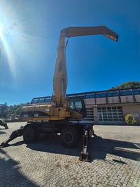 Caricatore gommato Caterpillar M325D MH del 2005, 14.500 h, 4 stabilizzatori, cabina sollevabile idraulicamente fino a 5 m, pneumatici pieni, motore da 238 CV, Polipo Minelli da 800 LT, buone condizioni. Motore: CAT C7 ACERT Tipo: Diesel, 6 cilindri in linea, turbo raffreddato ad acqua Cilindrata: 7.2 litri Potenza lorda: 186 kW (circa 252 HP) @ 2.200 giri/min Potenza netta (ISO 9249): 175 kW (circa 238 HP) @ 2.000 giri/min Peso operativo: ca 30.000 kg Pressione max impianto: 350 bar Rotazione torretta: 360° continua Contrappeso maggiorato Cabina elevabile