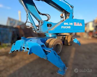 CARICATORE GOMMATO FUCHS mod: MHL340 COMPLETO DI POLIPO a 5 pale CON GIREVOLE Anno: 2002 Ore: 15.000 circa Portata massima: 10 Ton Peso: 25.000 kg Sbraccio: 13.50 mt Cabina pantografo; Con staffe stabilizzatrici; Completo di documentazione.