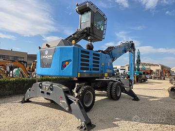FUCHS MHL335F, anno 2018, conta ore 8400, completo di braccio industriale, 8 gomme, 2 stabilizzatori e lama anteriore, valvole di blocco cilindri idraulici sollevamento e bilanciere, cabina con aria condizionata, sedile pneumatico, elevazione pantografo, impianti idraulici addizionali, bilanciere industriale, polipo Gusella con rotazione idraulica a 5 chele,sistema di pesatura VEI Millenium 5, Sistema di sicurezza anti collisione e uomo a terra EGOpro Safe Move, sistema aggiuntivo filtrazione cabina marca SEA, grata anteriore avvolgimento cabina, telecamera posteriore, ventola idraulica reversibile, larghezza trasporto 3000 mm., altezza 3500 mm., sbraccio a terra 11 MT, denuncia INAIL, dichiarazione CE, manuale uso e manutenzione.