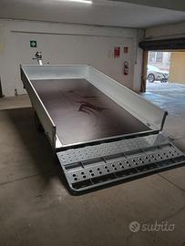 noleggio carrello per il trasporto di Fiat 500 d'epoca, Microcar, Moto, Quad, Piaggio Ape ... trasporto materiale ingombrante, traslochi.. ampio pianale di carico basculante con portata utile di 750kg misure lunghezza 300 x 180 di larghezza , comoda rampa di salita con argano manuale con targa autonoma .se non hai la macchina con il gancio contattami per un preventivo.