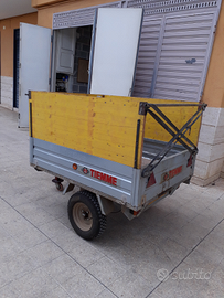 Carrello appendice: dimensione mt.1,15x1,42, con targa propria bianca e libretto di circolazione proprio. Dotato: di 3 ruote rinforzate a 8 tele, di cui una di scorta, sollevatore ad alzata variabile, n. 3 sponte. Euro 800,00 non trattabile.