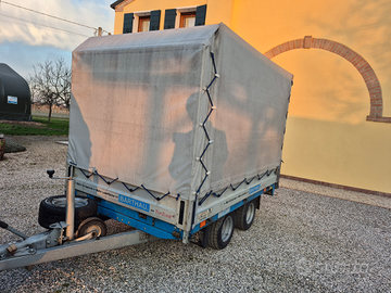 Salve, vendo carrello biasse, ruote sotto il pianale ad alta pressione. Larghezza 163 cm, lunghezza del cassone 250 cm, lunghezza totale 394 cm. Massa massina complessiva 2700 kg Portata 2238 kg Buone condizioni generali Gomme 70%