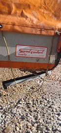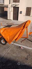 Pensionato svende pratico rimorchio carrello appendice ex carrello tenda mai usato, con dimensioni notevoli, oltre 2 m x1,30 dotato di luci,frecce freni e stabilizzatori, rimorchiabile con targa ripetitiva, visto pianale basso è indicato per trasporto bici, moto atrezzi da giardinaggio ecc. può essere utilizzato dietro trattori o altro, posso fornire occhione, dotato telo copertura originale e ruota di scorta, il carrello è datato .a sempre stato in garages, sanissimo , dispongo di 2 carrelli con attacco agricolo, posso inviare altre foto, preferisco contatto al 3393552215 a ci interessa si trova accordo, devo liberare garages