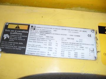 vendo carrello elevatore HISTER DA 10 QL. ALZATA 3300mm , traslatore, batteria ottima, idroguida, carica batteria, ottimo affare euro 4900,00 telef. Mostra numero