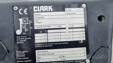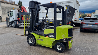Vendo carrello elevatore diesel Clark modello CDP 25.Portata kg. 2.500.Anno 1997.Ore di lavoro 7.900.Muletto con montante triplex e alzata libera altezza massima di sollevamento metri 5,52.Motore 4 cilindri diesel.Muletto tipo Caterpillar, Mitsubishi, Linde, Toyota.Prezzo netto i.e..Per info339 1952234339 5814237