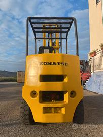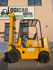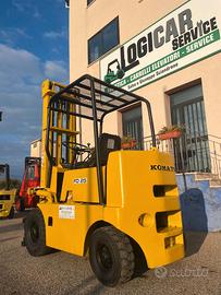 Carrello elevatore diesel KOMTASU ricondizionato modello FD25 portata kg 2500, motore komatsu, gommatura pneumatica, traslatore laterale, montante duplex.