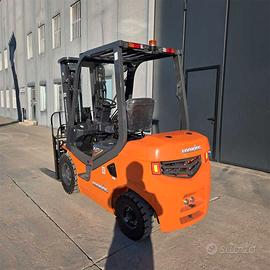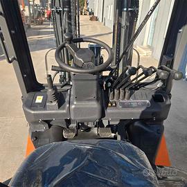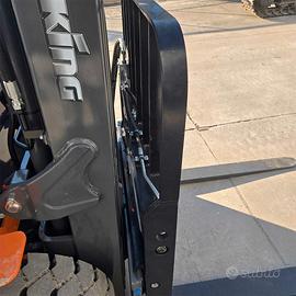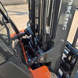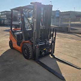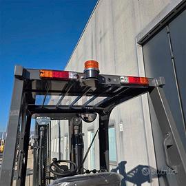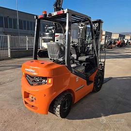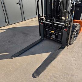 Carrello elevatore diesel, marca Lonking, modello CPCD25-X serie X, portata 2.5 ton (4 ruote), montante libero triplex da 4700 mm, KUBOTA V2403-CR-TE STAGE V, trasmissione idraulica a controllo elettrico, pneumatici pieni, leve a 4 vie, traslatore laterale, posizionatore forche, interruttore di arresto di emergenza, avviso di retromarcia, tetto in PVC, vetro anteriore e tergicristallo, corrimano posteriore con clacson, protezione del cilindro dello sterzo, set completo di LED, sedile con sospensione, forche da 1220 mm. Manuale uso e manutenzione. Certificato CE. Anno 2025. Nuovo di fabbrica.