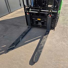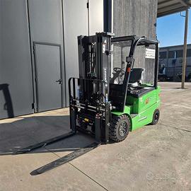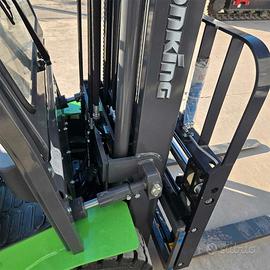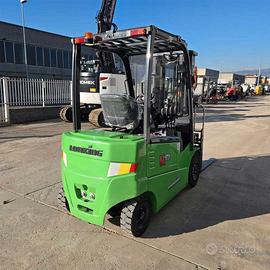 Carrello elevatore elettrico, marca Lonking, modello LG25B serie N, portata 2.5 ton (4 ruote), montante triplo completamente libero da 4700 mm, batteria al piombo-acido 80 V/300 Ah, controllo Inmotion, caricabatterie, OPS di guida, pneumatici pieni, forche da 1220 mm, sedile ammortizzato, leve a 4 vie, traslatore laterale, posizionatore forche, interruttore di arresto di emergenza, avviso di retromarcia, copertura del tetto in PVC, vetro anteriore e tergicristallo, corrimano posteriore con clacson, protezione del cilindro dello sterzo, set completo kit luci LED. Manuale uso e manutenzione. Certificato CE. Nuovo di fabbrica.