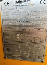 Vendo carrello elevatore elettrico Nuova Detas – Robusts EVO 420, macchina robusta e affidabile, ideale per magazzini, officine e attività logistiche. 🔧 Caratteristiche principali: Marca/Modello: Nuova Detas Robusts EVO 420 Anno: 2004 Numero di matricola: 47652 Alimentazione: elettrica Batteria: 48V – 9,8 kW – 500–640 Ah Caricabatterie collegabile alla rete elettrica Certificazione C.E. ⚠️ Nota importante: Le batterie attualmente non caricano. Il mezzo era funzionante, ma non è stato effettuato un controllo recente. Venduto visto e piaciuto nello stato in cui si trova. 👉 Ideale per chi cerca un mezzo da sistemare o per pezzi di ricambio. Ottima base per chi vuole fare un affare! 💰 Prezzo interessante 📍 Disponibile per visione Contattami per maggiori informazioni!