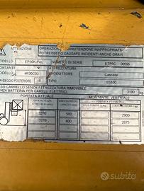 muletto elettrico del 2009 alzata 3,30 mt , da gommare , funzionante
