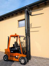VENDO CARRELLO ELEVATORE LUGLI 255 E, RIMESSATO SEMPRE AL COPERTO, IN PERFETTE CONDIZIONI, MOTORI TRASMISSIONE LINDE, IDROSTATICO A PEDALE, H. SOLLEVAMENTO 4,40MT, PORTATA 2500 KG, MOTORE PERKINS A DIESEL, GOMME PNEUMATICHE