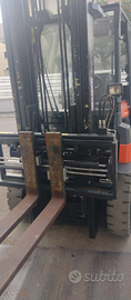 Muletto a batteria, marca TOYOTA, modello FBMF40, portata kg. 4000, anno 2013, altezza sollevamento 4 mt grande visibilità, posizionatore di forche traslante, batteria 80 volt in ottimo stato, forche mm. 1300, caricabatterie, sistema antiribaltamento SAS, minileve su bracciolo sedile, frenatura a recupero di energia, cabina con riscaldamento, antinfortunistica, revisionato,