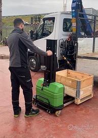 Transpallet stoccatore carrello elevatore semielettrico autocaricante marca Frendix IL 600.1000, portata 1000Kg altezza di sollevamento600mm.