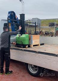 Niente più sponde idrauliche o costose e pesanti gru: èl'unico transpallet con colonna capace di sollevare sé stesso ed il caricodentro e fuori dal veicolo per la consegna!