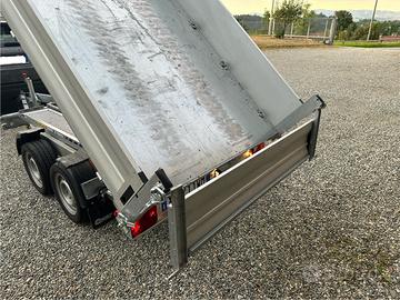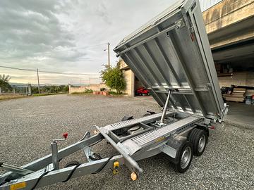 Carrello ribaltabile trilaterale con pompa idraulica, porta rampe sotto il carrello con rampe per caricare mini escavatori o attrezzature. Tenuto molto bene vendo per passaggio a carrello superiore.