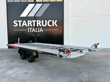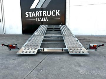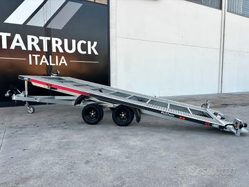 NUOVO Rimorchio trasporto auto 2 assi 2700 kg o declassabileModello basculante a terra senza rampe con pianale forato misure 4.85 X 2.16