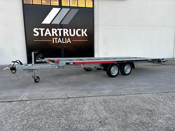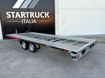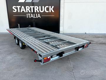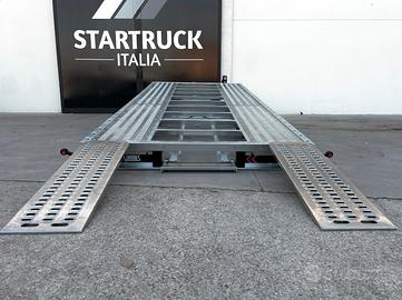 NUOVO Rimorchio trasporto auto 2 assi 3450 kg o declassabileModello basculante a terra + rampe con pianale forato misure 5.05 X 2.16
