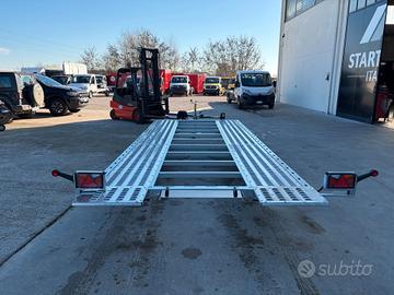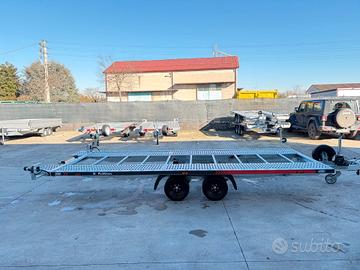 NUOVO Rimorchio trasporto auto 2 assi 3000 kg o declassabileModello basculante a terra senza rampe con pianale forato misure 5.4 X 2.16