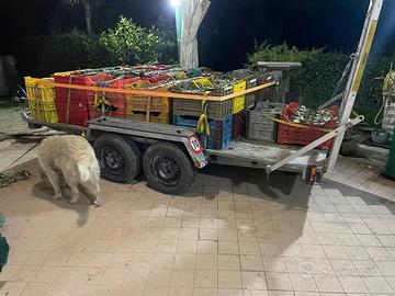 Misure di carico utili 3.5mt x 1.8mt , portata utile 1370 complessiva 1720kg, gomme 80% , impianto frenante completamente nuovo compreso i cuscinetti delle ruote, il carrello ha sia le rampe e di carico "fisse" e sia due rampe smontabili da fissare sul pianale.