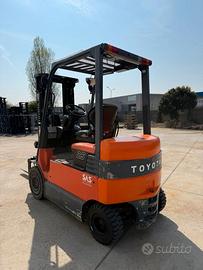 CARRELLO ELEVATORE TOYOTA 7FBMF25 ELETTRICO ALTEZZA MT.4,50 TRIPLEX COMPLETO DI TRASLATORE FORCHE DA MM. 1200