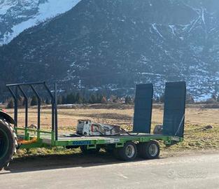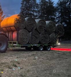 Pianale agricolo. 2 assi 140 Q.li freni pneumatici asse sterzante dimensioni pianale 655x255 cm con rampe e piedino di appoggio idrauliche barra anteriore e pali per rotoballe